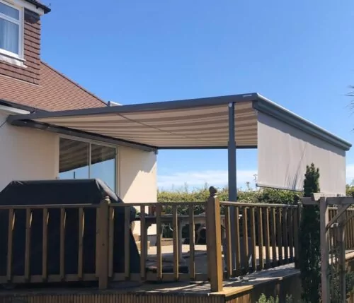 Our client needed shading to be provided to a conservatory. Due to the complex nature of the building, a pergola awning was the best option.
